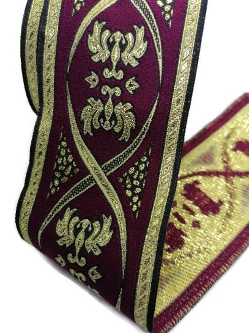 2 75 Inches Embroidered Trim Turkish Fabric Concepts Woven Border Woven Ribbon 70 Mm Royal Edwardian Royal Crown Jacquard Ribbon Dexis Iberica Craft Supplies Tools Embroidery