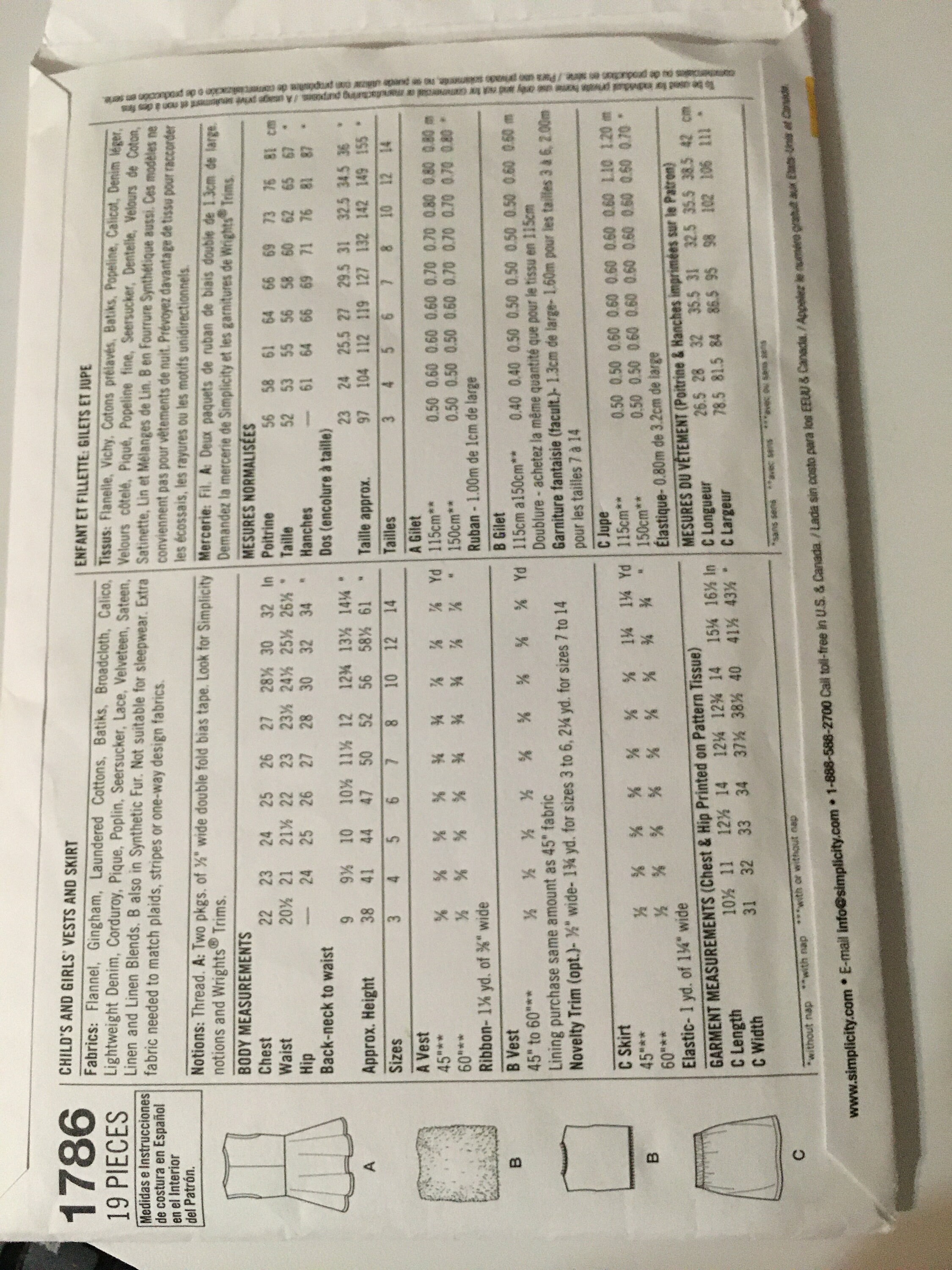 Simplicity 1786 Girl S Vest And Skirt Sewing Patterns Sizes 3 6